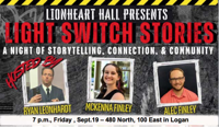 LOGAN – The popular “Light Switch Stories” series will return to LionHeart Hall at 7 p.m. on Friday, Oct. 24.